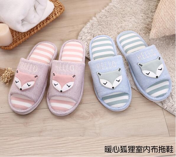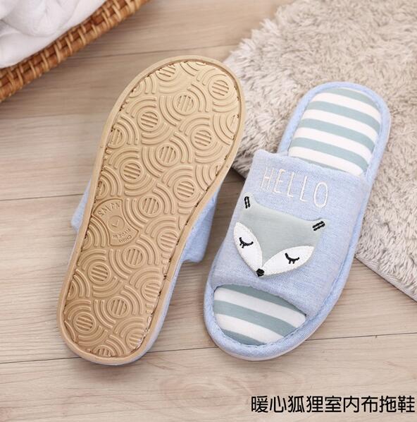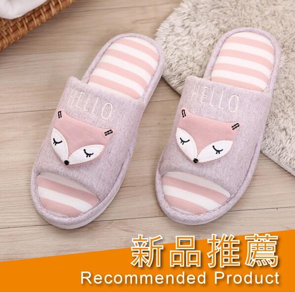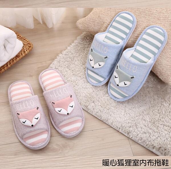 暖心狐狸室內布拖鞋