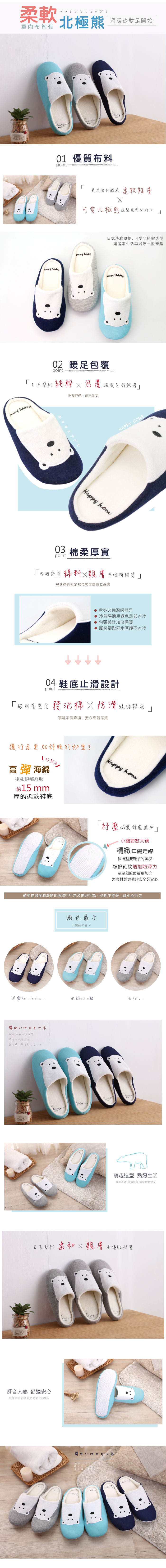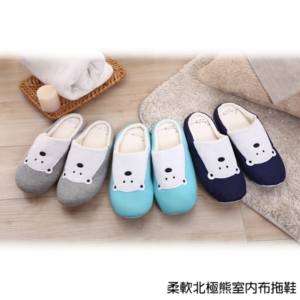 棉柔厚實★柔軟北極熊室內布拖鞋