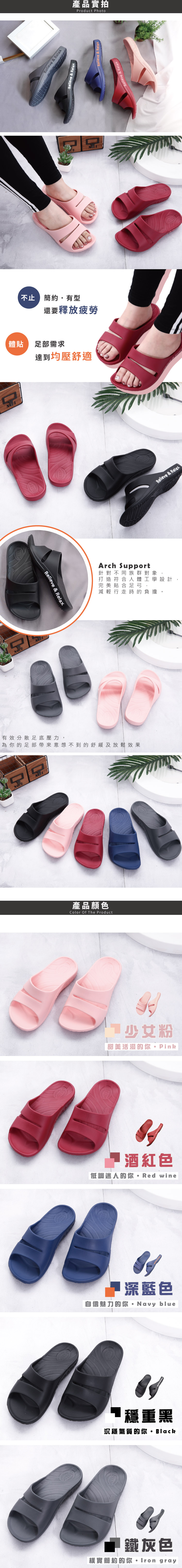 足底均壓★足弓簡約雙帶拖鞋